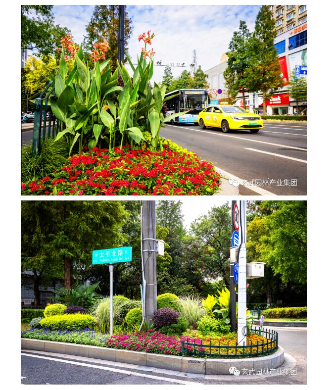 對北京東路、珠江路、市府門前路、太平北路、玄武大道、龍?bào)绰返染G島及島頭花境選用一品紅、萬壽菊、三角梅、洋鳳仙、麗格海棠、矮牽牛、歐月、藍(lán)雪花、超級海棠、翠蘆莉、一串紅、孔雀草、石竹等靚麗多彩、品相精致的花卉進(jìn)行布置,城市街景處處繁花似錦、百花齊放,營造栩栩如生、欣欣向榮的景觀效果。